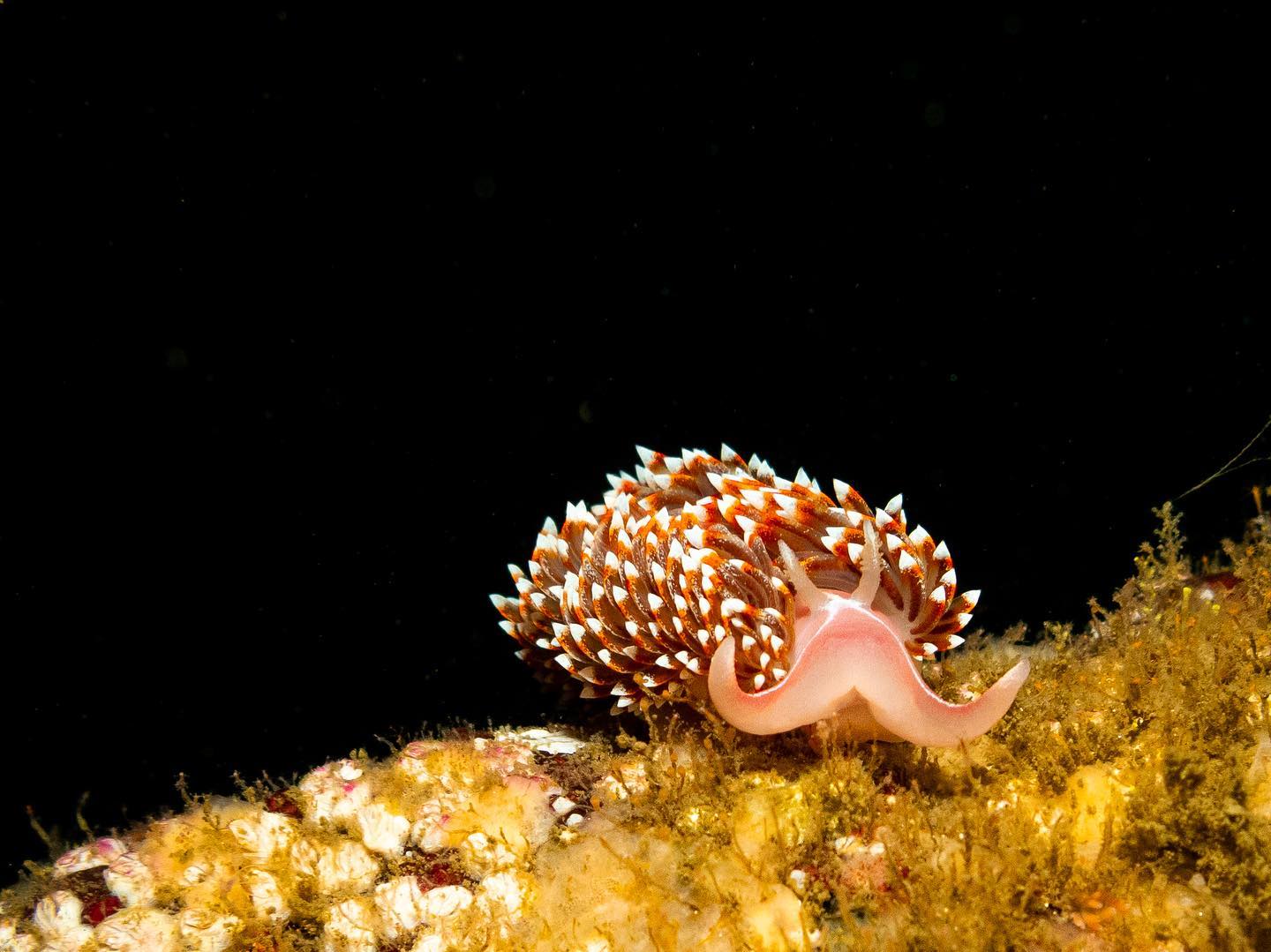 Los nudibranquios son una especie de moluscos sin concha, a los que también se les conoce como babosas marinas por el simple hecho de no tener caparazón cuando son adultos. Se trata, por tanto, de invertebrados moluscos que son capaces de quedarse con las células urticantes de las anémonas de las que se alimentan.